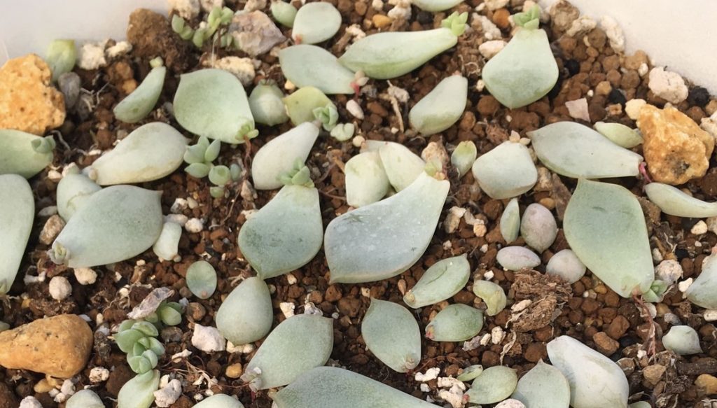 翌日、ふと様子を見てみると、葉挿しちゃんを並べた即席の鉢(というか発泡スチロール容器で代用したもの)だけが、水浸しになって、土の上に出来た池に葉挿しちゃんがぷかぷか沢山浮かんでました!汗汗